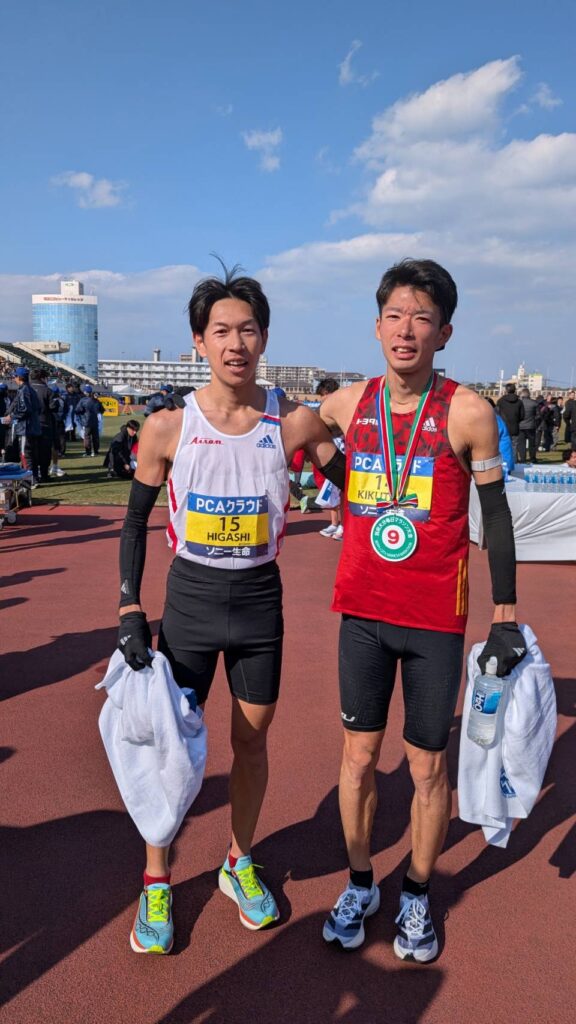 33kmあたりで三菱重工の井上さんと少しだけ並走させていただき、表情を確認したところ私よりも苦しい表情をしていました。