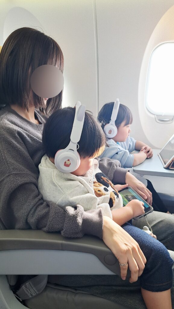 家族も応援のために一緒の便で行くことに。